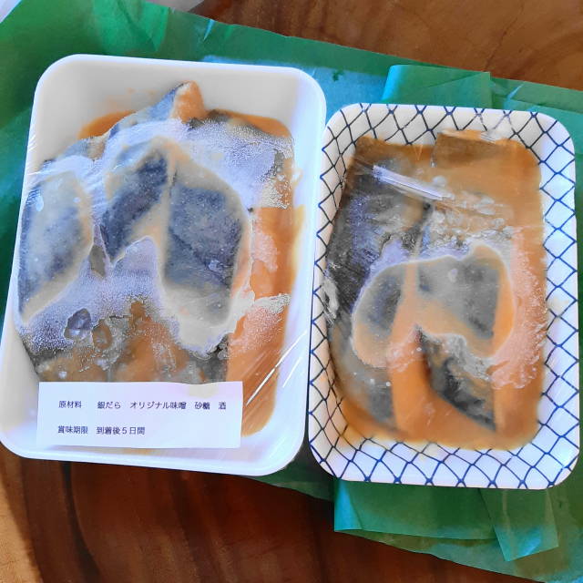 解凍してから軽くキッチンペーパーでみそを拭いてから焼きました。