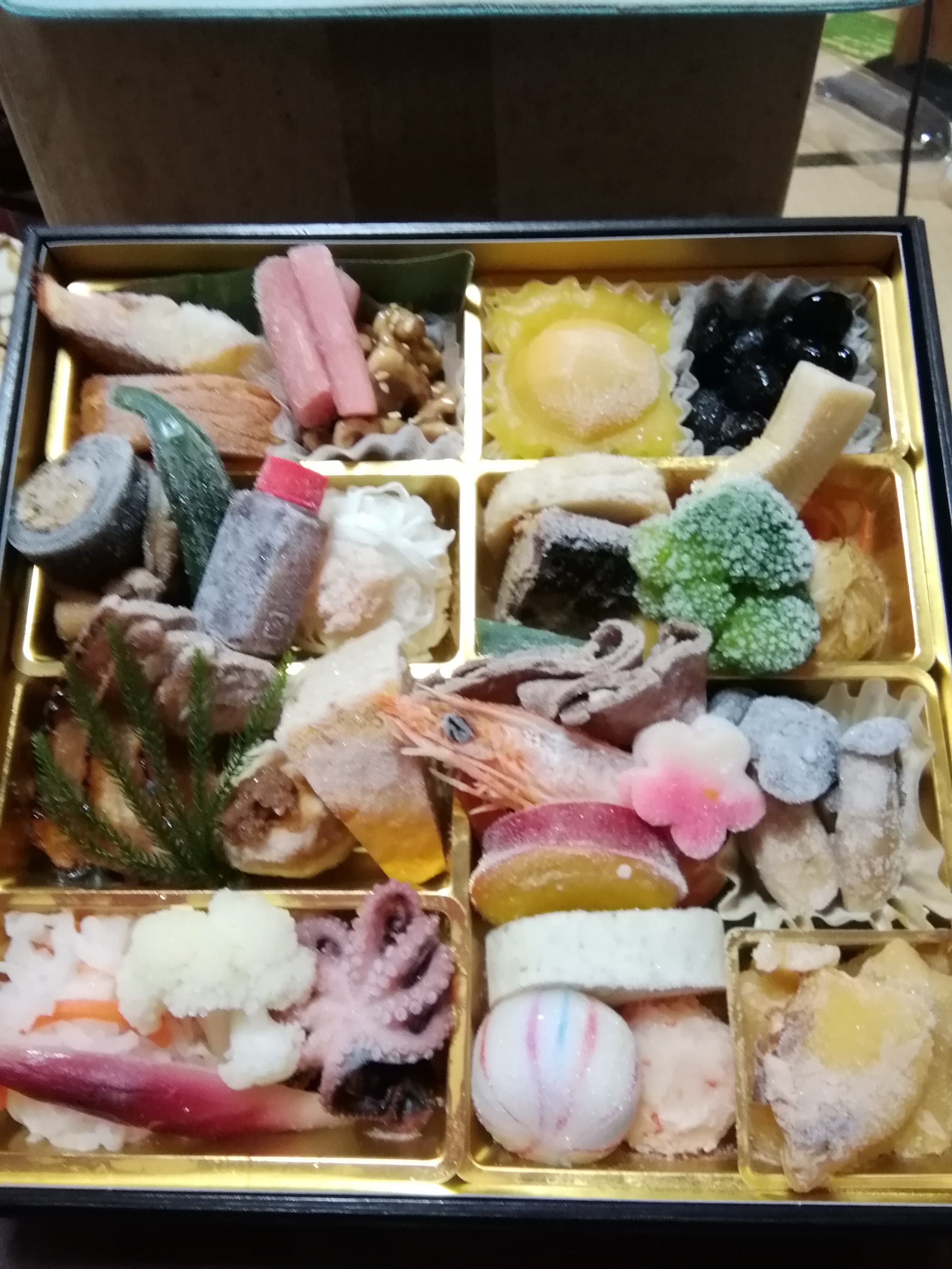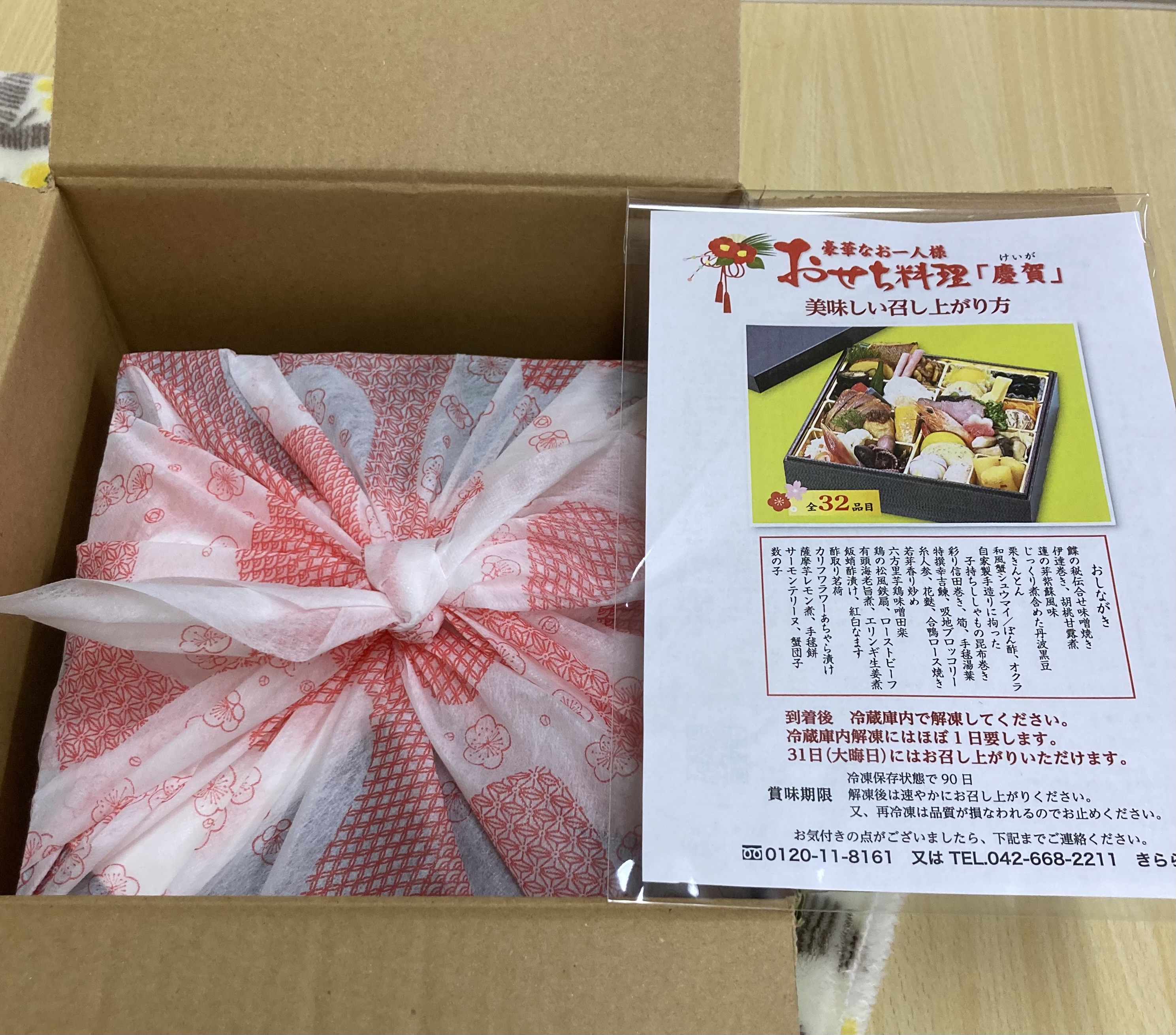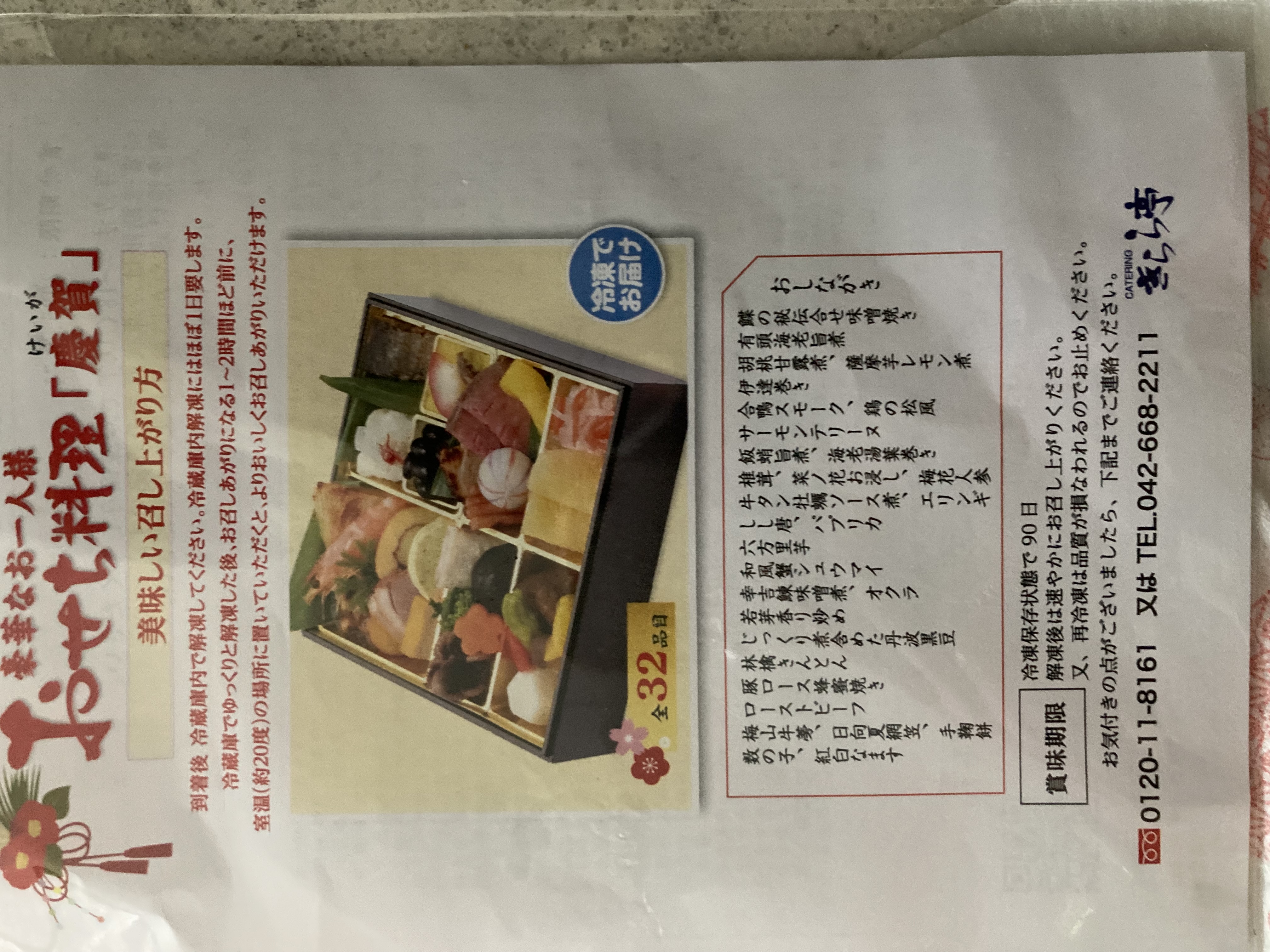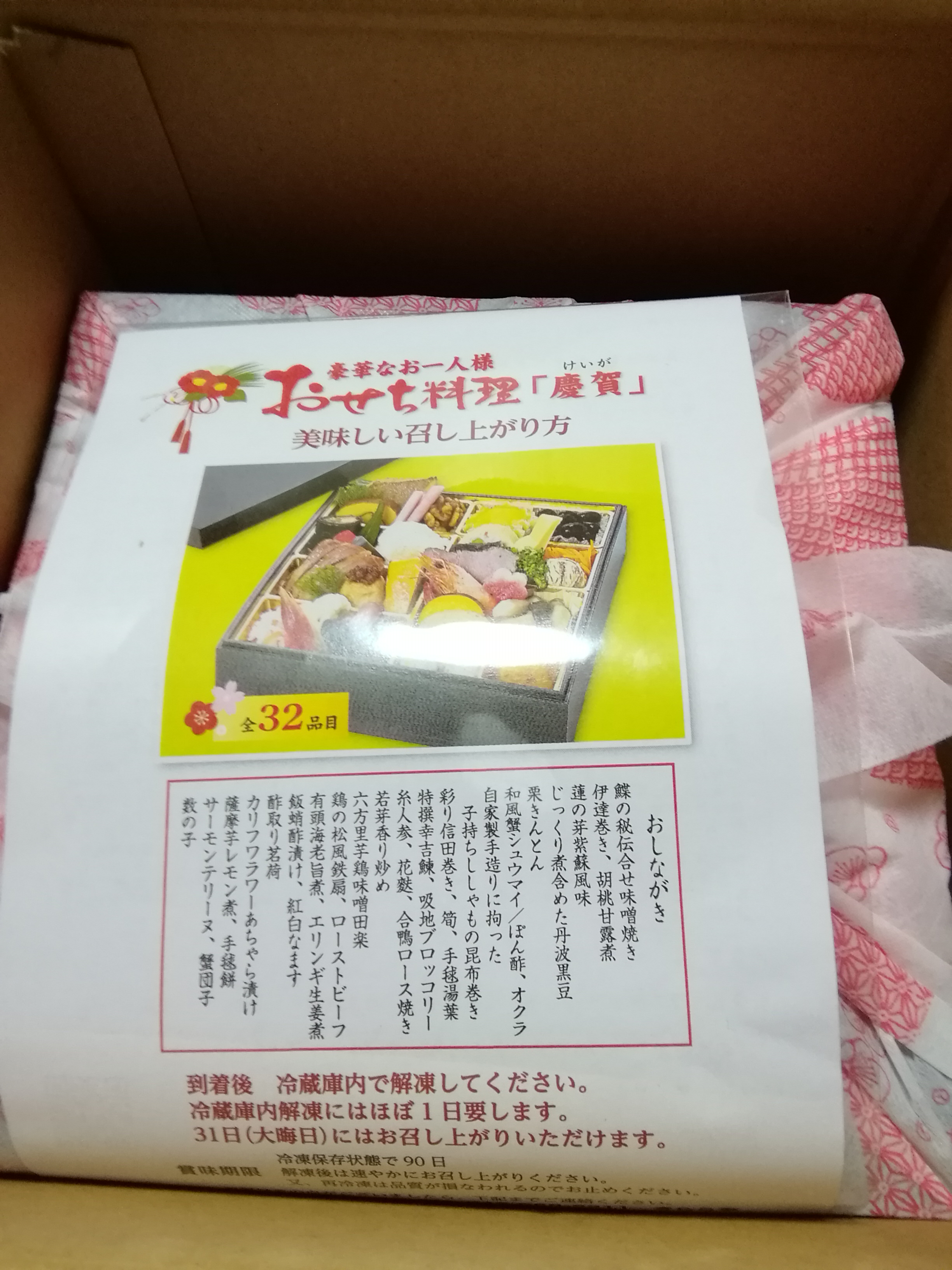 ワクワクしながら重箱の蓋を開けると、驚きで暫く目を見開いたままの状態だったと思います。写真通りぎっしり詰まった33品目が綺麗に並んでいます。今すぐにでも食べたい気持ちを抑え、説明書き通りまずは冷蔵庫で1日ゆっくり解凍してから、食べる1~2時間前に常温に置くとよりおいしくいただけるとのことです。ここはじっと我慢します。