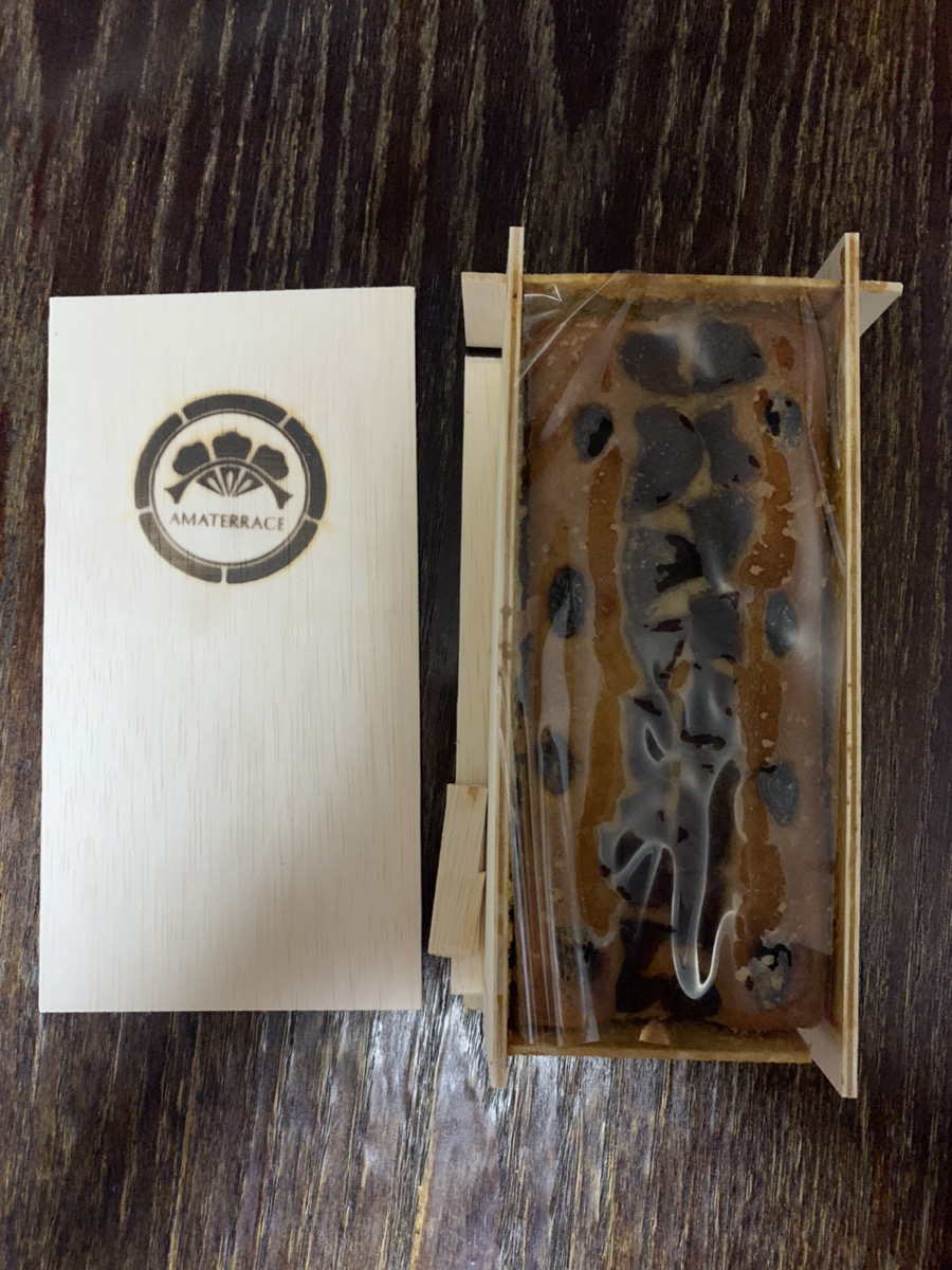 丁寧な梱包で、早速開けるとパウンドケーキなのにもかかわらず和の包装で尚且つ木箱に入ってるなんてとてもお洒落でかっこいい!
