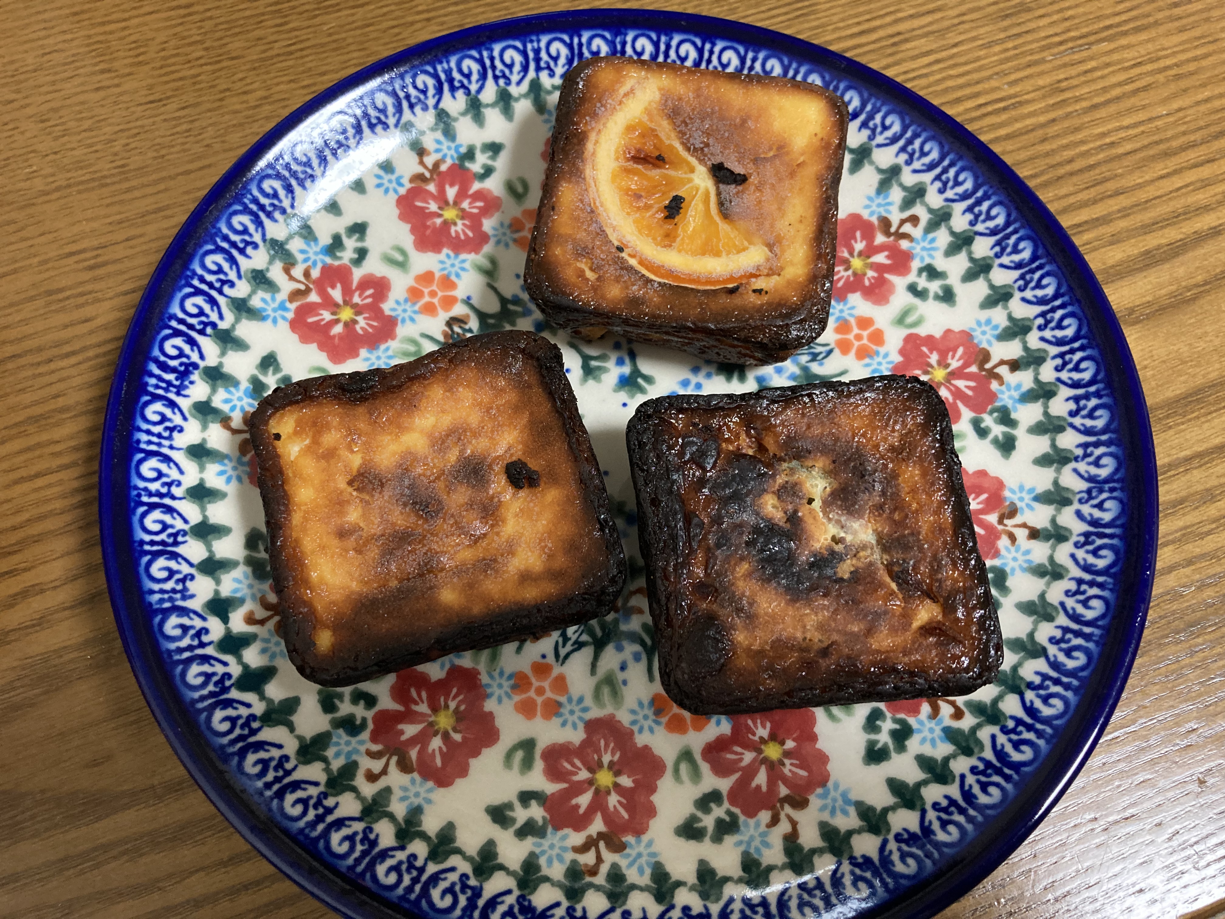 商品ページを拝見して、勝手にキューブ型のチーズケーキかと思っていましたが、正方形の薄めの形状でした。