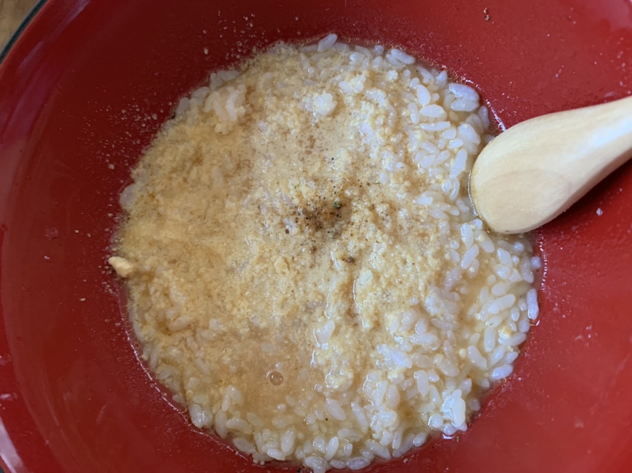 スープをお湯で溶いていくと、トマトのいい香りがしてきます。