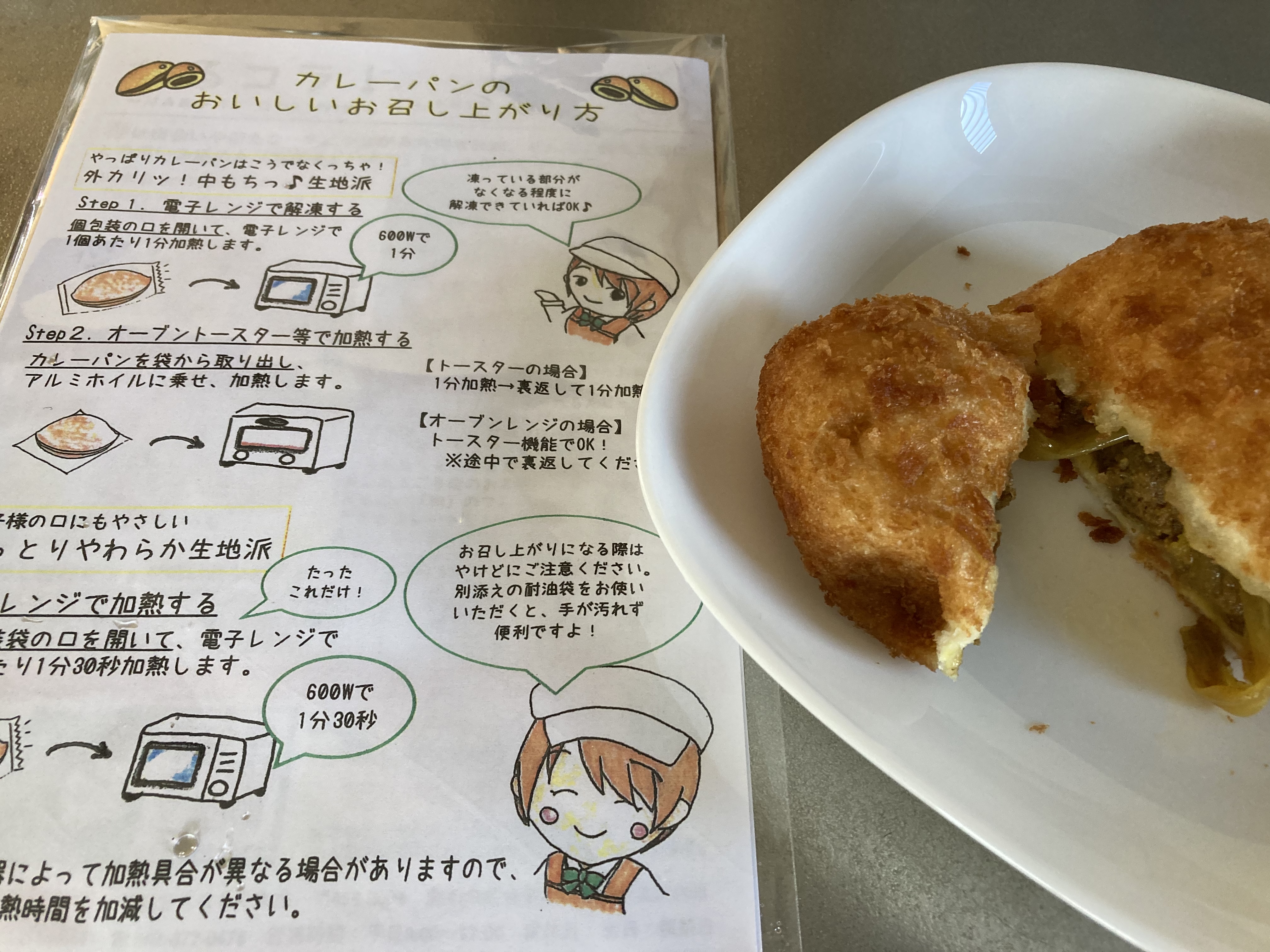 温めたカレーパンを包むシートもはいっていたので、本格的な見た目になって、ちょっと面白くていいなと思いました。