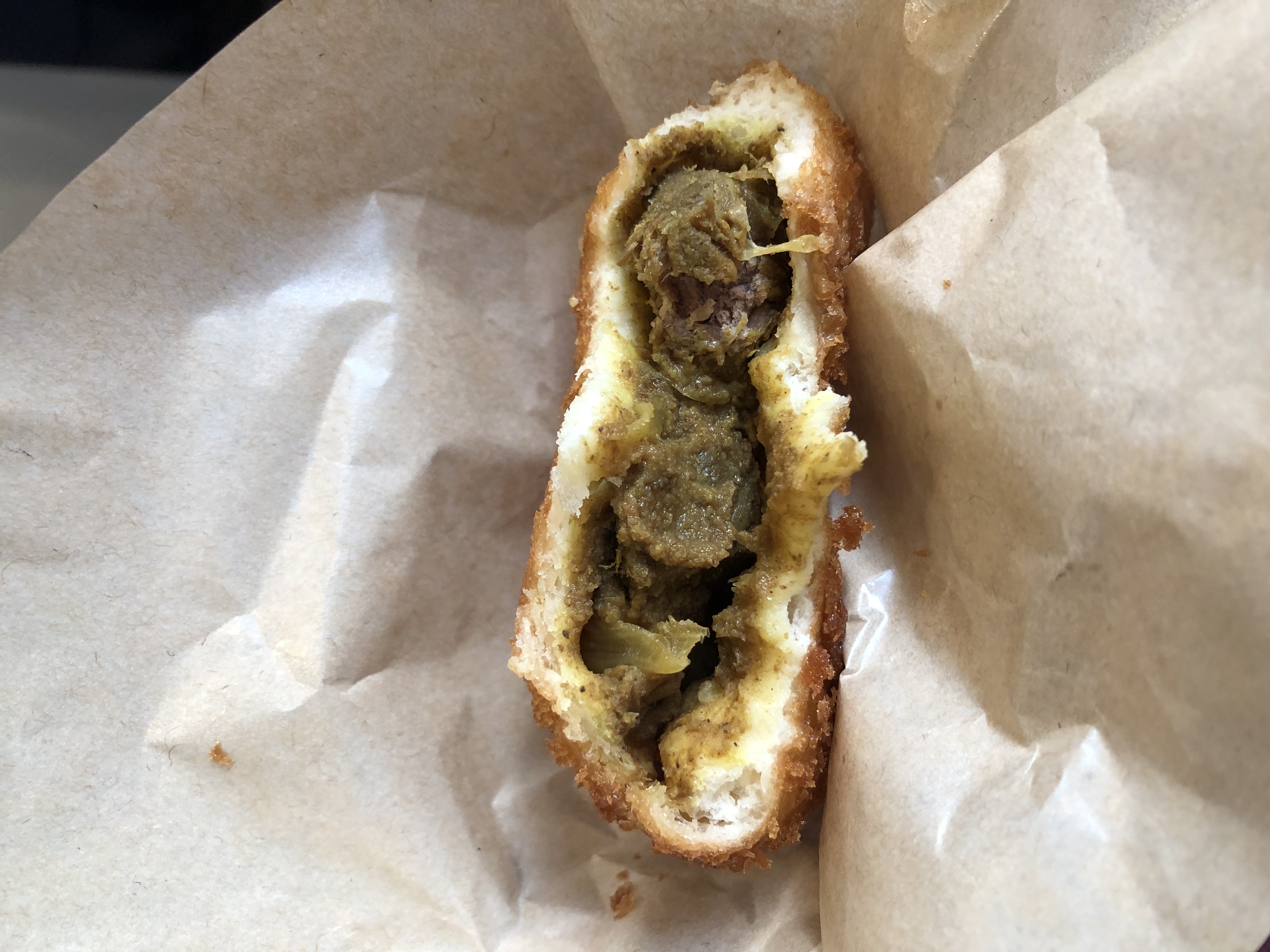 パン生地が、ふわふわパンとゆうだけでなく、ふわふわでもっちり!だったので、先端のカレールーが入ってない部分の生地だけでも美味しかったです。