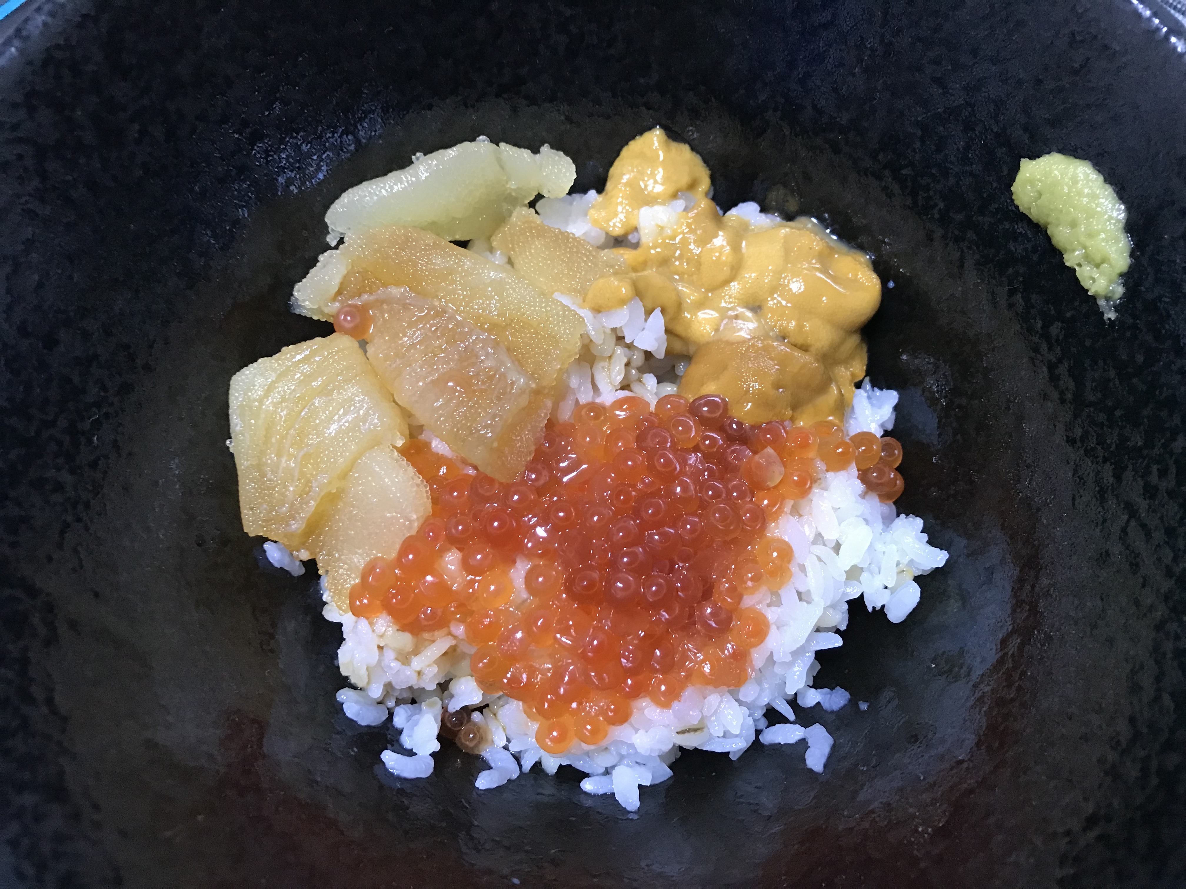 1番楽しみにしていたウニ。口の中に入れるとすーっととけていき、とても甘く美味しかったです。臭みなど全く、あまりの美味しさに感動でした。
