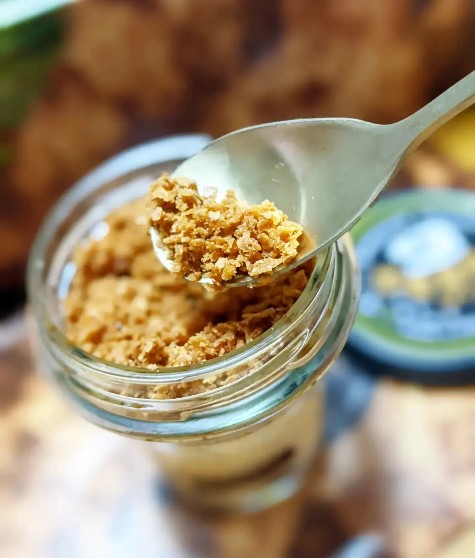 いよいよフタをあけます…なんとサクサクしたものがプリンを覆っている!!
