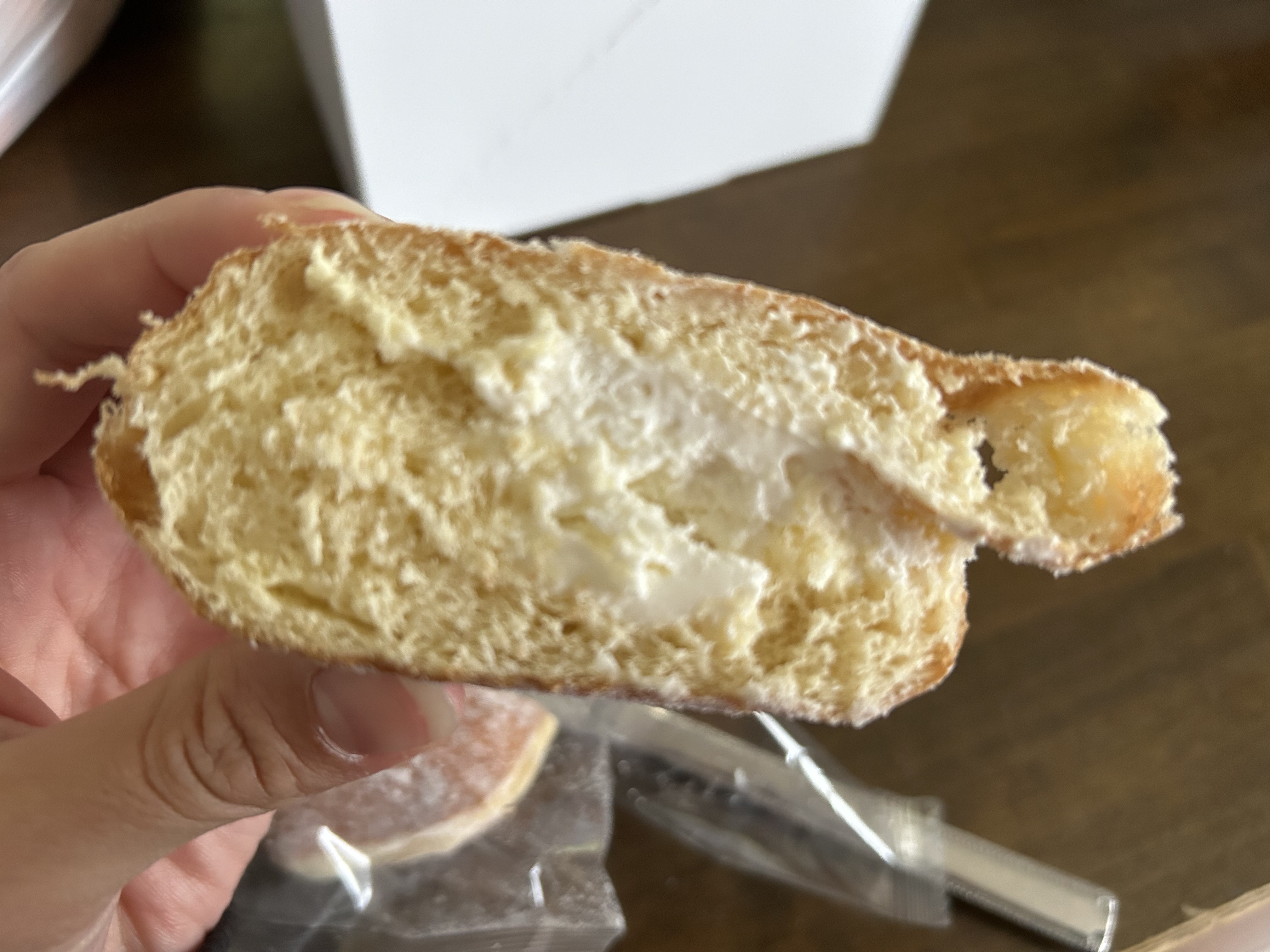 クリームはたっぷりはいっていて口当たりもよく、甘さ控えめで食べやすい。生地はふわふわだけどしっかりとしていて、思った以上に食べ応えがありました。