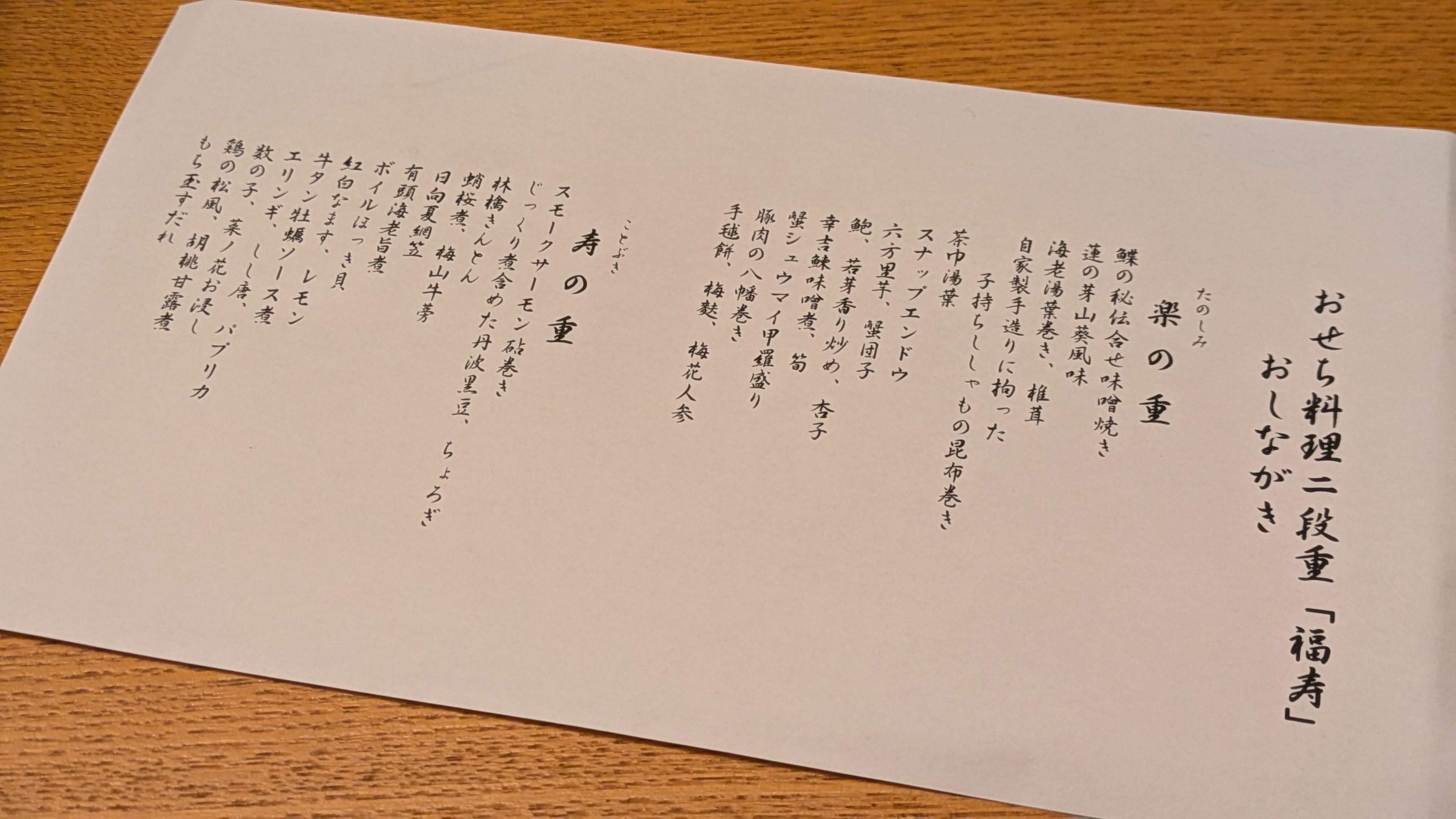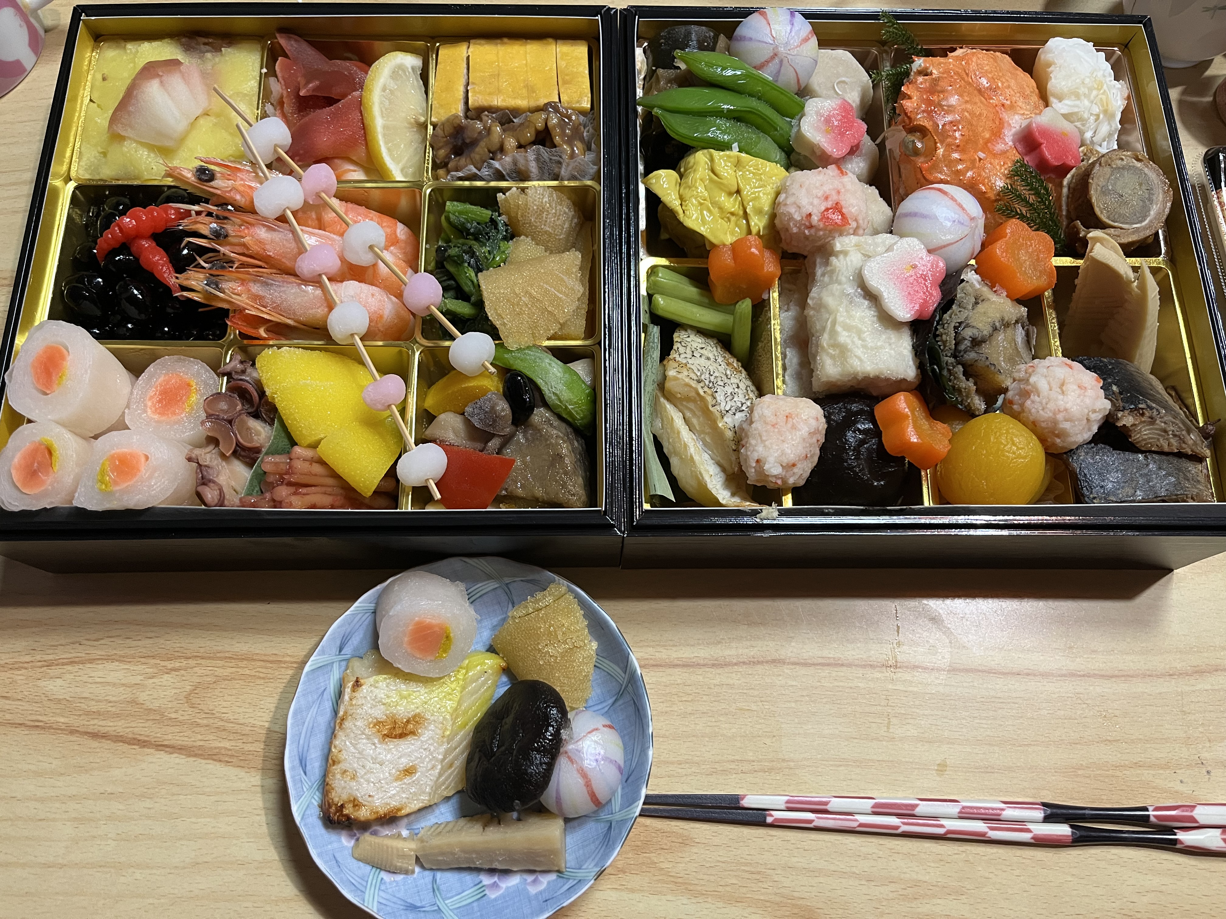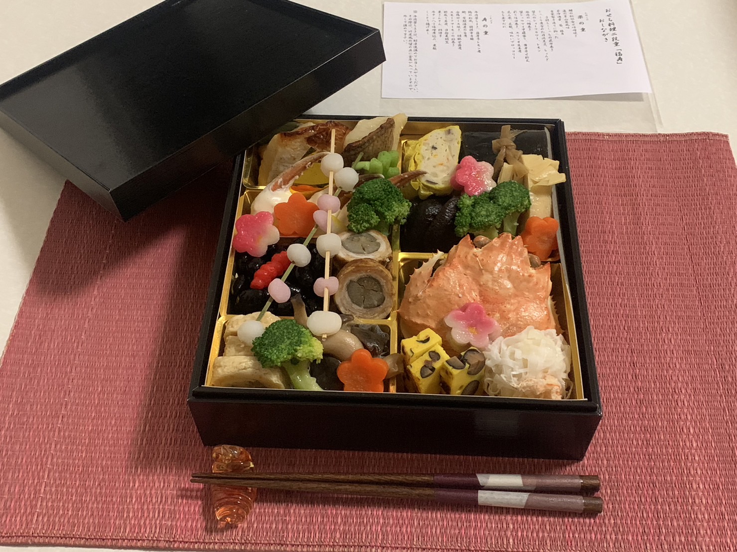 総評といたしましては、全体を通して、手作りの温かみが感じられるおせち料理でした。どの品目も丁寧に作られており、味わい深く、見た目にも美しいものばかりです。おせちの量も現代の核家族なら、お正月には量的にも十分で、味もしっかりとしている品が多いので、普段お酒を飲まない方でも喜びの新年という事でお正月ならではのこのおせち料理の存在感を味わえると思います。