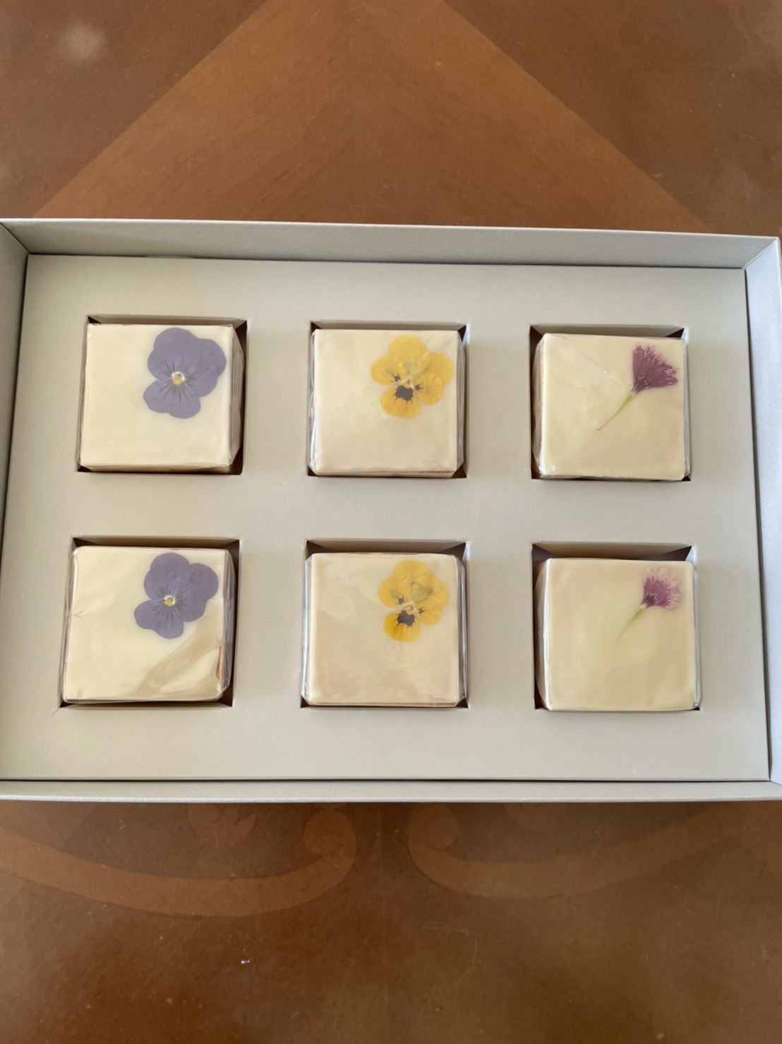 ケーキの1つ1つに飾られたエディブルフラワーのワンポイントの可愛らしさとシンプルでお洒落な見た目と共に、厳選素材を使って、添加物を使わずに、丁寧に作られているキューブケーキは、作り手のこだわりを強く感じる、大人のケーキとでも言う様なとても美味しい逸品でした。