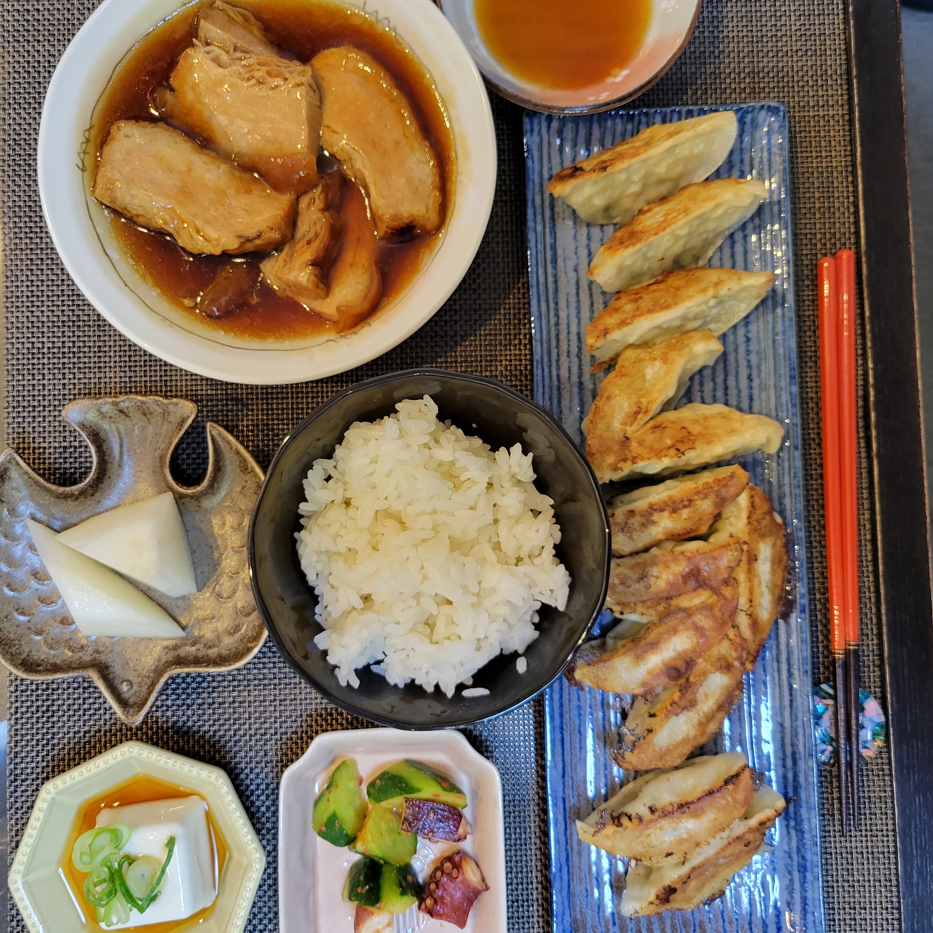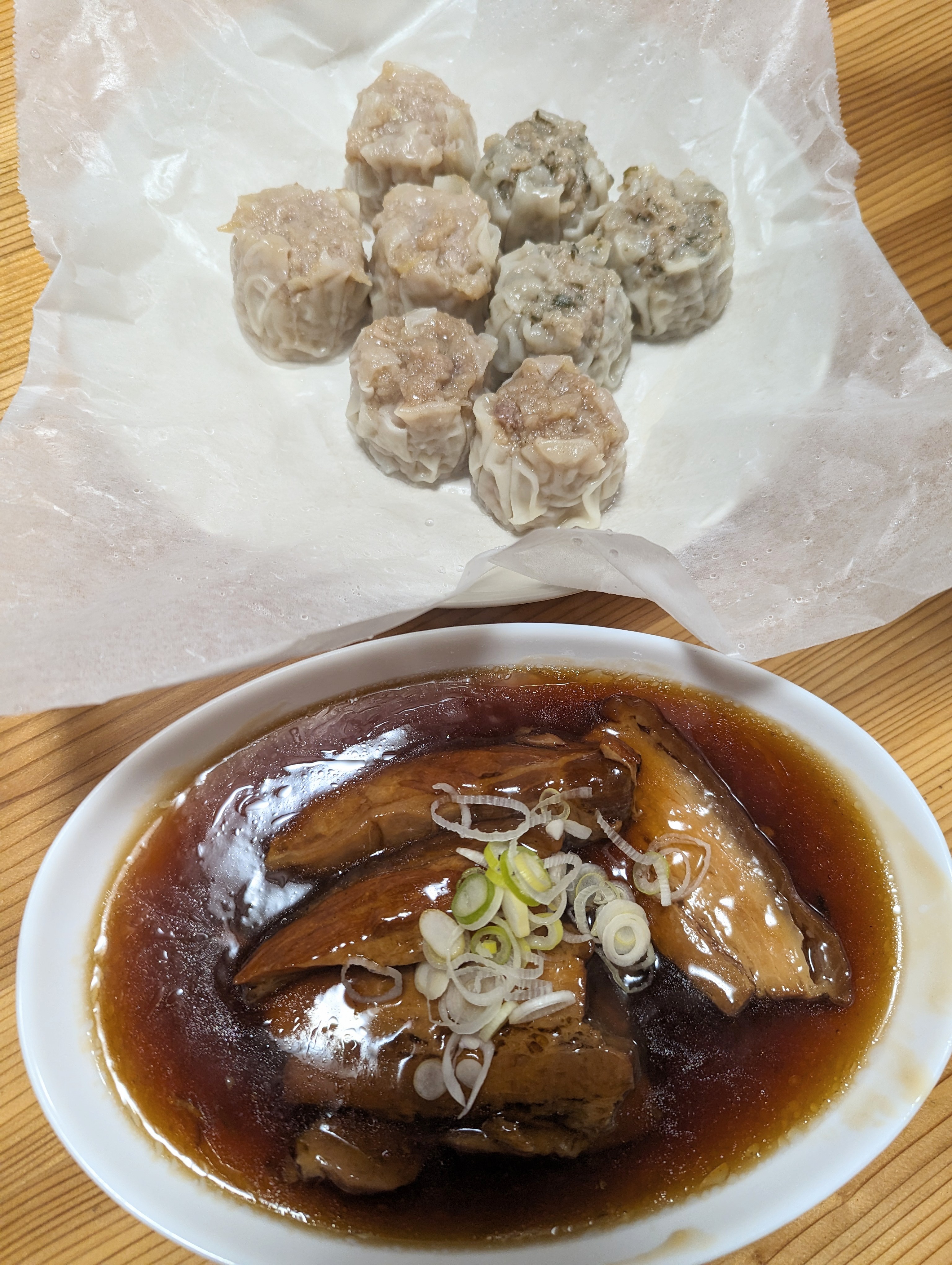 旨みも重量もたっぷりの餃子と焼売と角煮