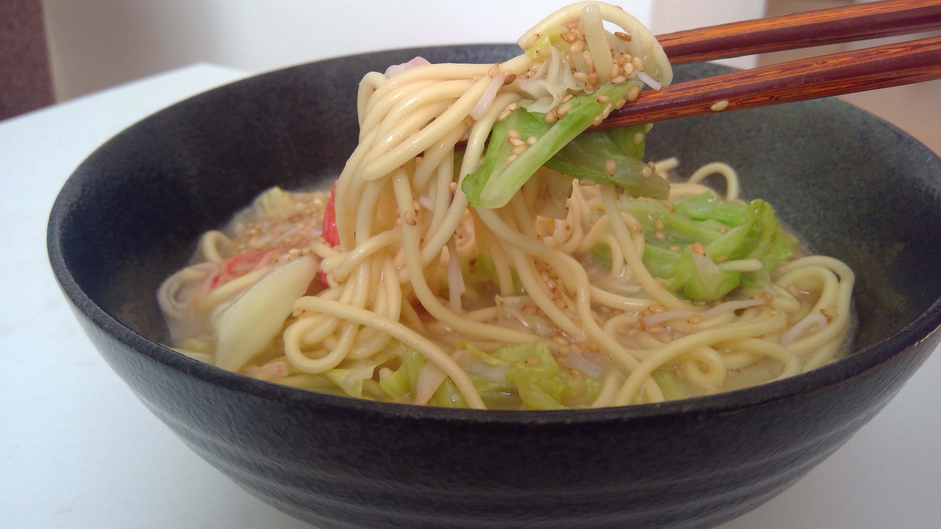 ちゃんぽんで麺が太めだから、結構お腹に貯まる一品。1人前でお腹いっぱい満足。