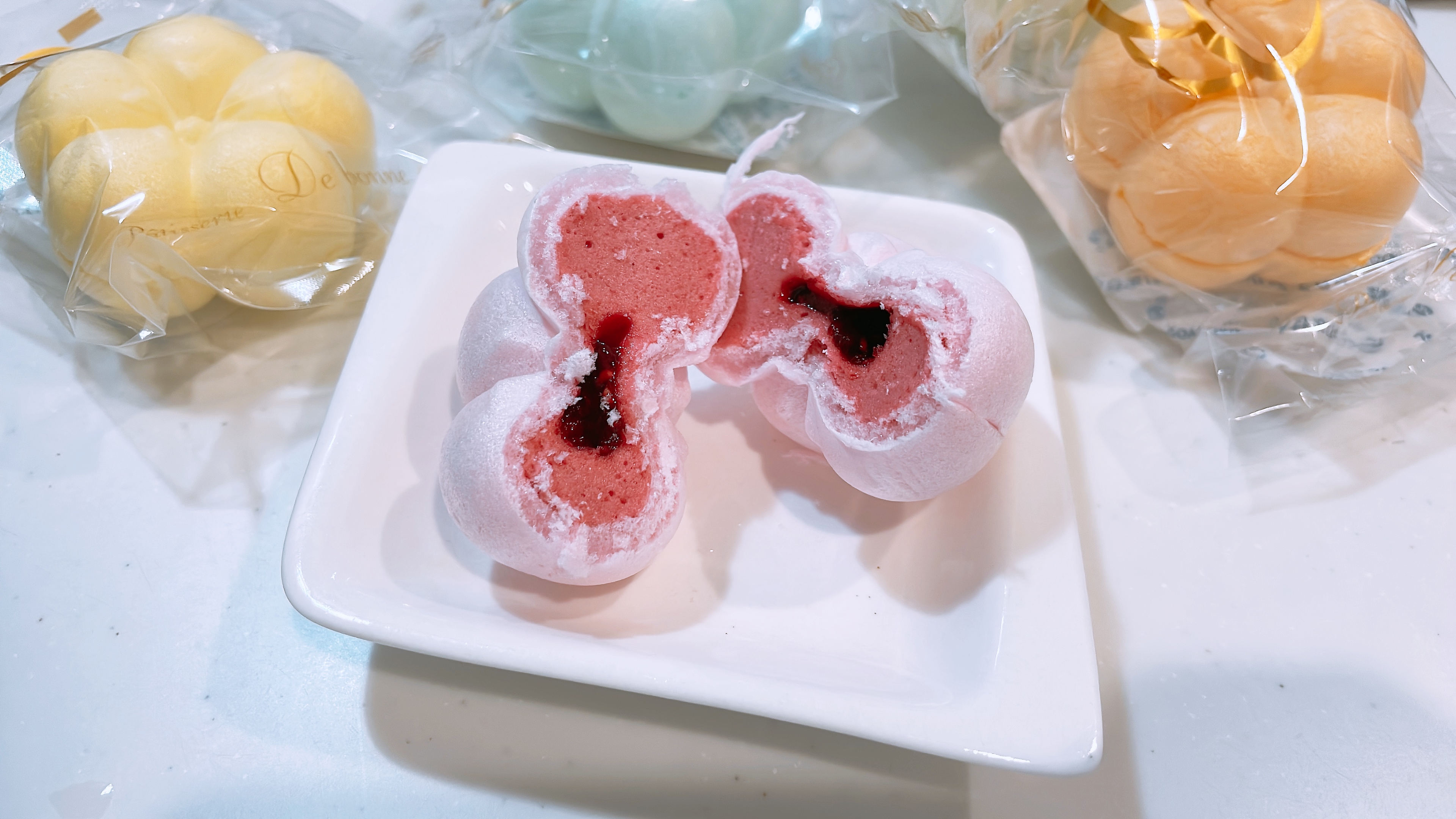 外箱同様、淡い上品なピンク色をしたもなかマシュマロで、梅の花の形をした最中生地がひと際際立っておりました。