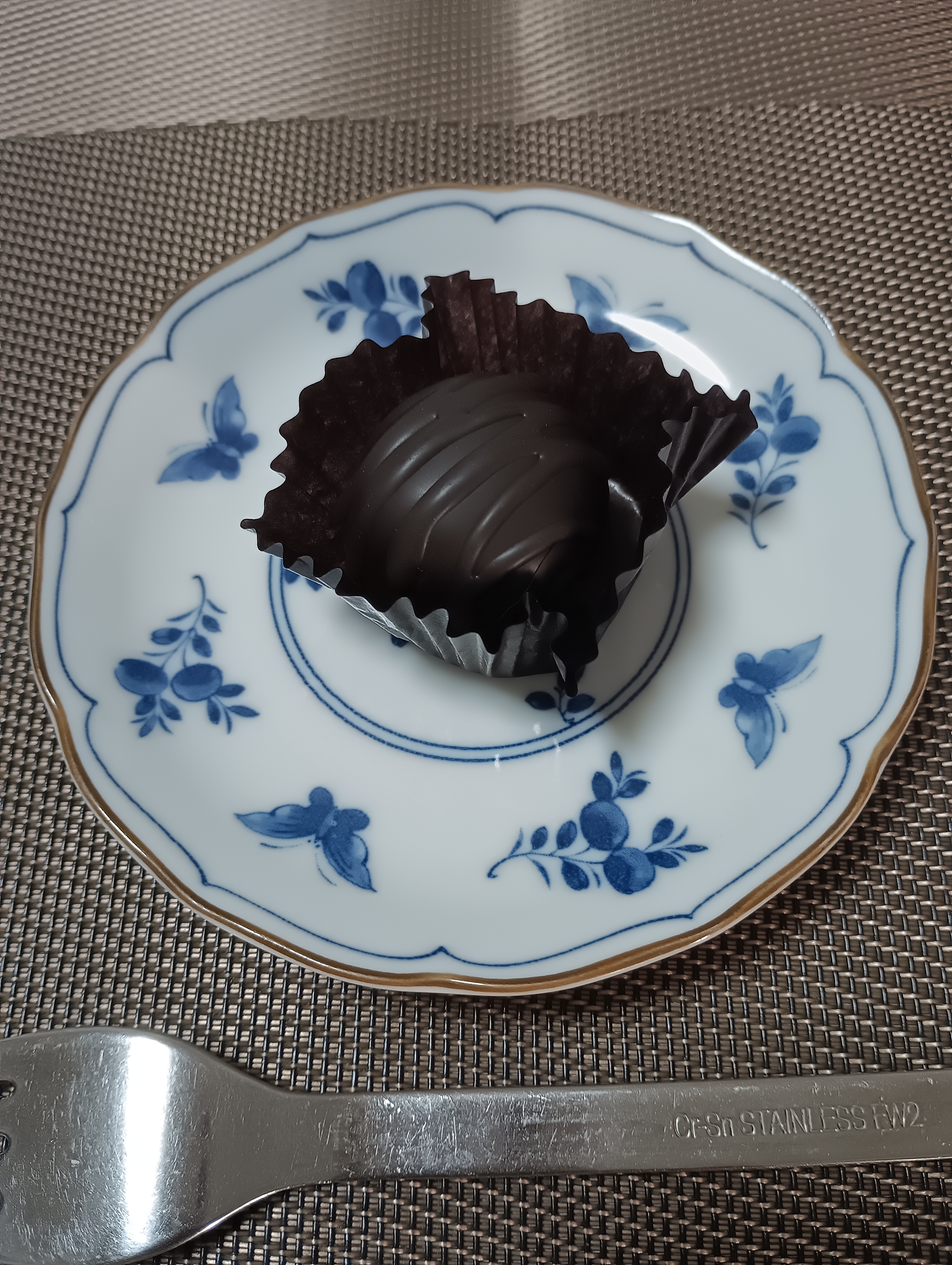 味の方は最初ウイスキーボンボンのドロっとした感じと甘さをイメージしていました。ですがお酒が入っているな、というべちゃっとした感じがなくダークチョコレートの苦味もあって全然くどくなかったです。甘いスイーツのつもりで食べるとちょっと違和感があるかも知れません。