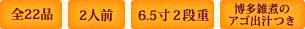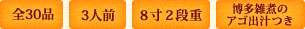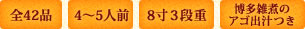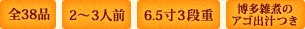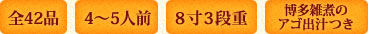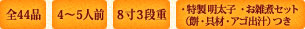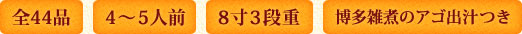 和洋折衷の食材が44品も詰め込まれた、博多久松さん1番人気のおせちです。職人さんたちが厳選した最高の食材と、それぞれの食材の旨みを引き立てる至高の出汁。量も味も大満足、大人気の本格料亭おせちは、家族みんなが揃うお正月にピッタリですね。