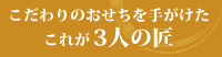 3人の匠の味が楽しめる四段重おせち。程よいボリューム感で、いつものおせち料理よりちょっと多く味わいたいと感じている方にオススメ! 商品サイズ:20.5×20.5×4.5cm×四段 |