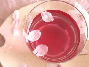 でも、あら不思議(笑)アルカリ水で割ると色が変化してほんのり桜色になるんです♪手品みたいで宴の席が盛り上がりますよね~。