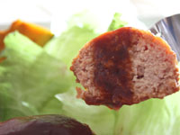 何と言っても鶏のハンバーグですからね、いわゆる牛の挽肉に比べぐっとヘルシーなわけですが、こちらで使われている「伊予ポジョ」という鶏は特に脂肪分が少なく肉質がしっかりしています。