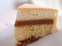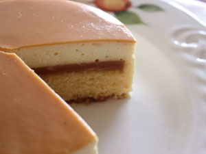 まず表面を艶やかなキャラメルソースが覆い、バニラが香るふわふわムースが現れたかと思うと、そこに滑らかなクレーム・キャラメルが挟み込まれています。
