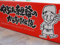 先代社長の「やぶれ親爺」と思われるイラストが描かれたまっ赤な箱に入れられて、真空パックにされたから揚げが届きます。