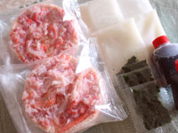 内容量:かに身4個、特製タレ2本、すり長芋4個、あおさのり4個