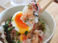 かに身とすり長芋の出会いモン。境港名物のふわトロ丼!