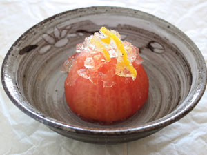 きらきらゼラチンに包まれた、柚子香る丸ごとトマトのお漬物