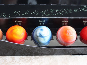 見てください、この美しさ☆ 天体マニアでなくても心惹かれますよね。現在、太陽系の主要天体として分類される水星から海王星までの8つの惑星が彩り豊かなショコラになっているんです。また水星はココナッツマンゴー、金星はクリームレモン、地球はカカオとそれぞれ味が異なり、バリエーションに富んだ風味を味わうことが出来ます。