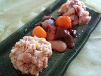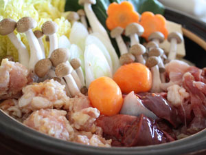 原材料:しゃも肉 、つみれ(しゃも肉、鶏肉、玉葱、澱粉、酒など)、豆腐(大豆、凝固剤など)