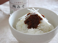 ・肉みそ:豚肉、みそ。玉ねぎ、本みりん、砂糖、りんご、しょうが、にんにく