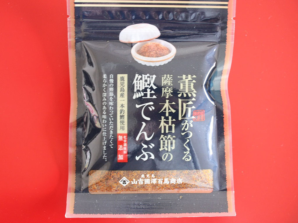 それは、鹿児島県指宿市の鰹節専門店「山吉國澤百馬商店」の鰹でんぶ。一本釣りの鰹を使い、自社で一貫して鰹節から鰹パックまで製造しているそうですよ。
