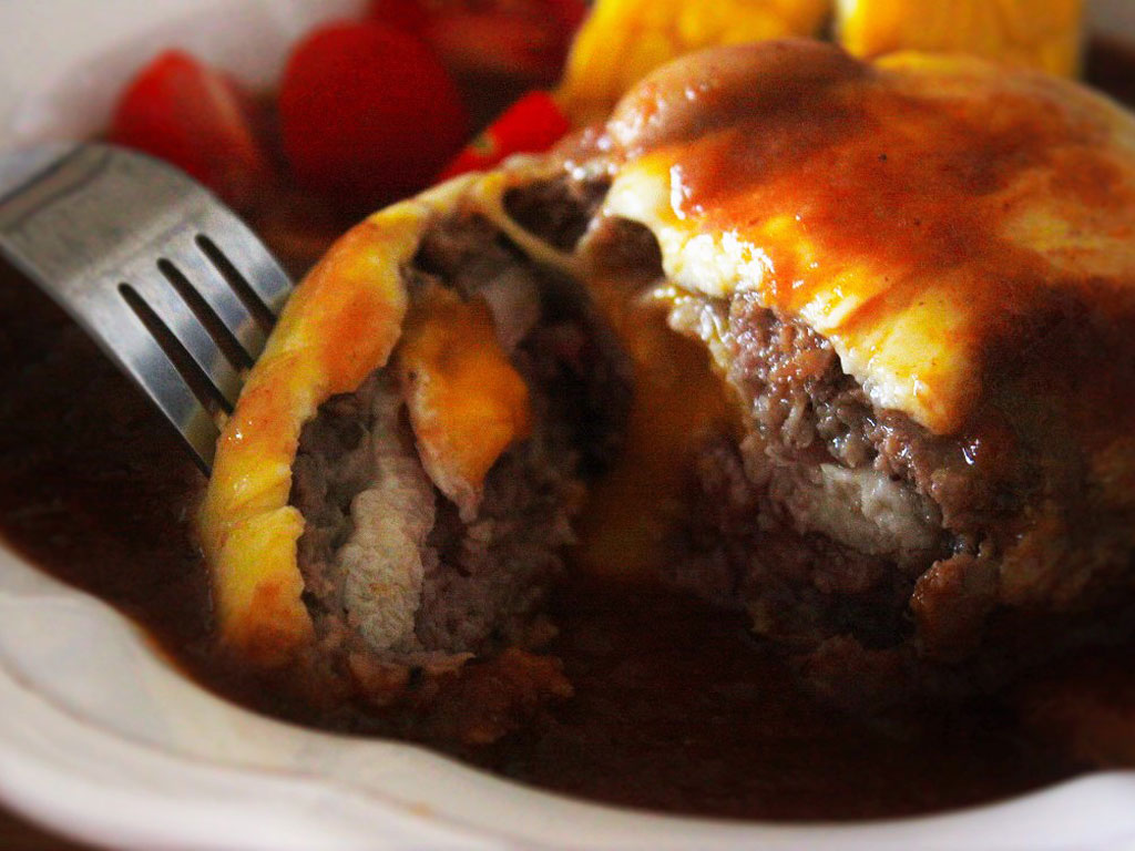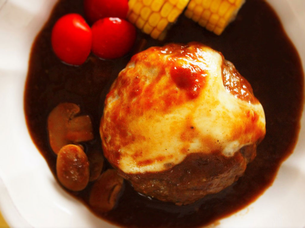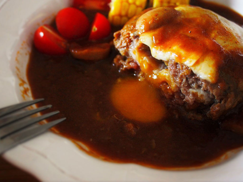 - 小田原産牛目玉焼き&チーズハンバーグ