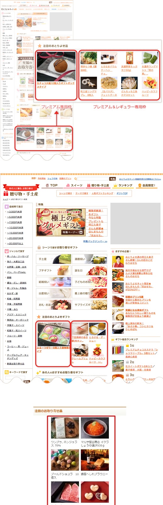 プレミアムとレギュラー専用枠をご用意しました。おとりよせネットTOPページ、ギフト特設ページ、スマートフォンTOPで貴社商品を大きくPRいたします。貴社口コミページへの誘導が、貴社商品の認知度がアップする効果大です。スマートフォンページトップにも対応しています。