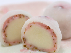 桜の塩漬けとあんこの甘さが絶妙!味も香りも春を感じる大福です。