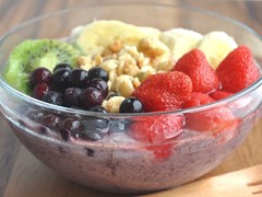 和歌山産の苺やブルーベリー等カットフルーツと一緒に一食分を個パックで冷凍してあるから便利!