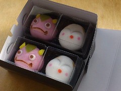 かわいい鬼の饅頭と、縁起の良いおたふく饅頭のセット!
